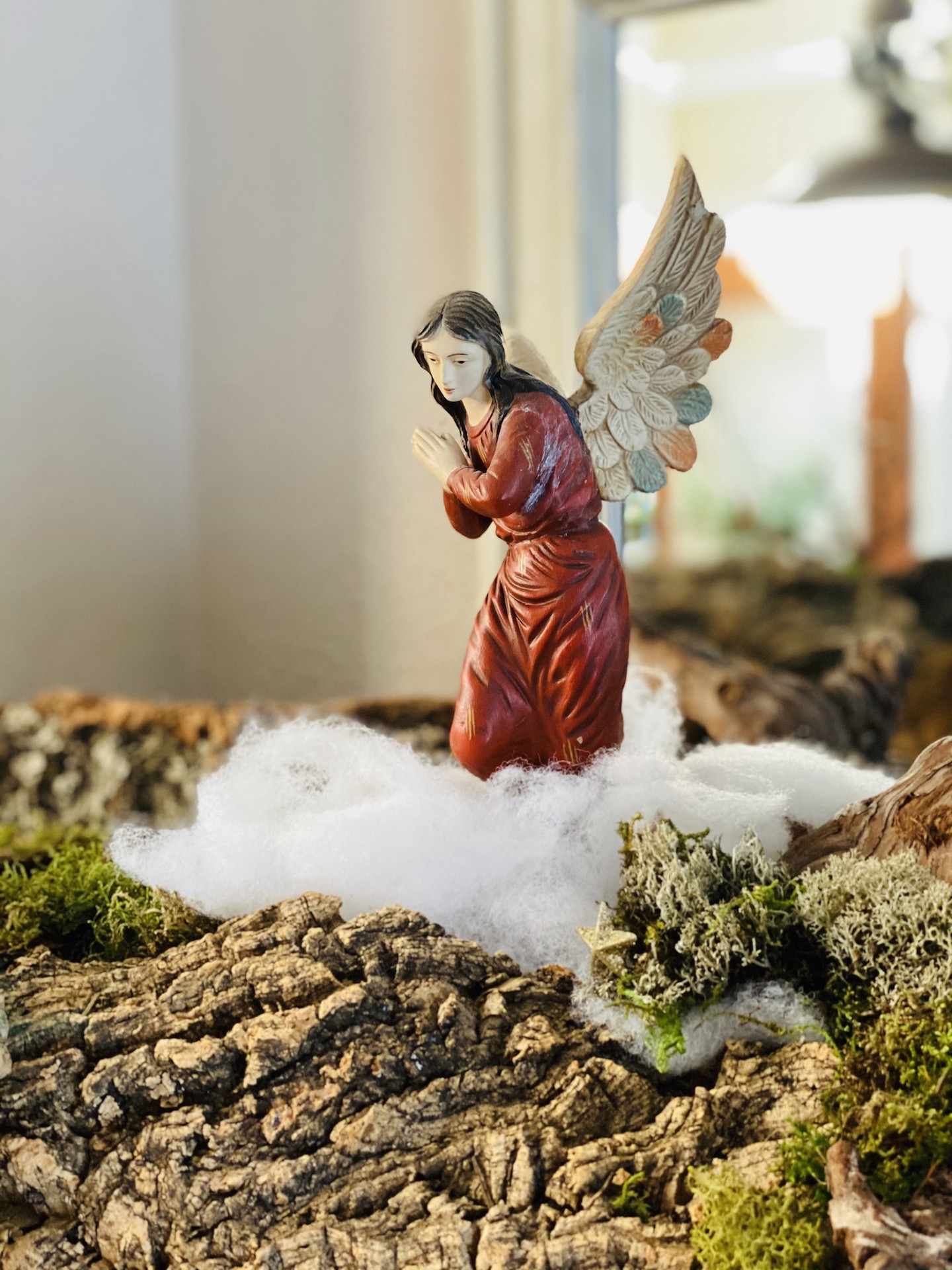 No... el ángel no se me olvida... ahí está, vigilante y expectante que te invita a mirar y entrar en la cueva de corcho bornizo, musgo y paja para hacerte tú mismo ofrenda en Belén .