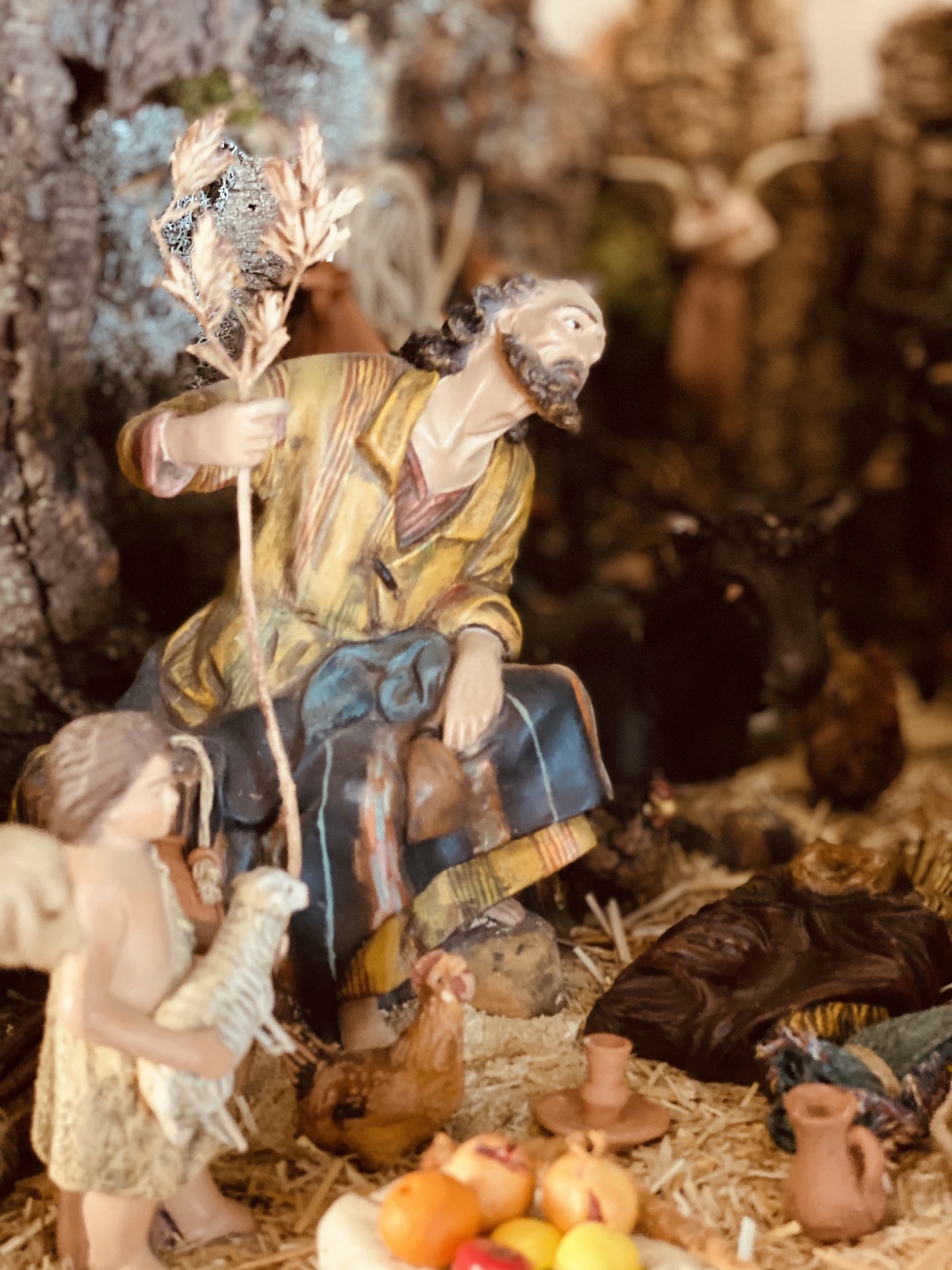 Siguiendo con esas escenas que a lo mejor están, pero son poco vistas, se me rondó por la cabeza otro instante (en Nuestro Belén 2020 (“Midgal Eder”) lo desarrollo en las escenas con figuras de Daniel José padre)… bueno, sigo, instantes de esos que se congelan en la plasticidad del Nacimiento, y que están llenos de sentido, de expresión contenida, de magia abrumadora…