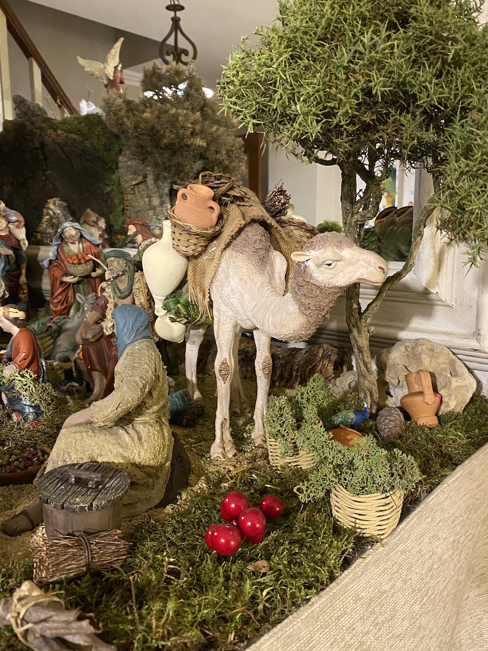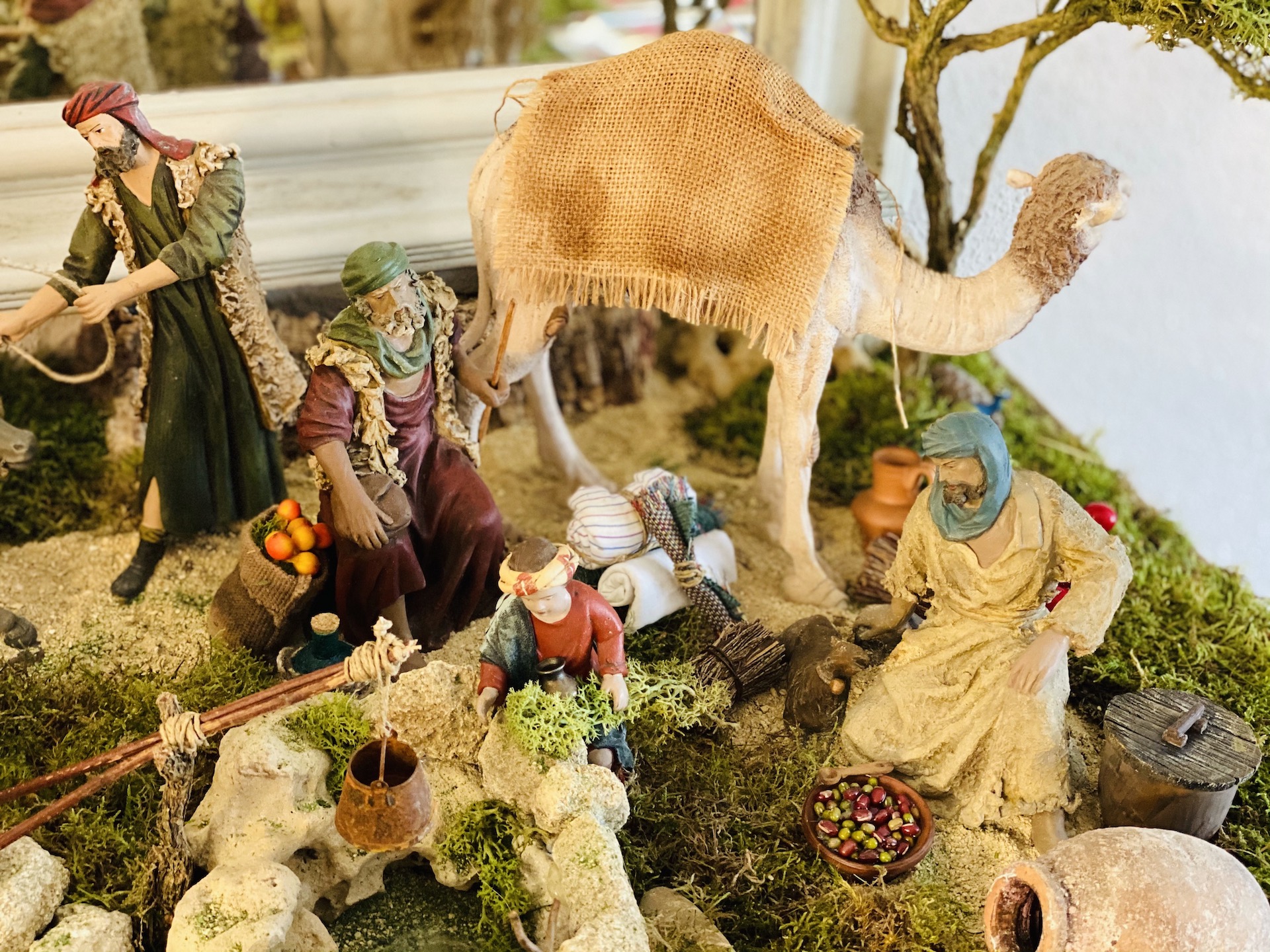 Y así ha sido... el sábado tuve la suerte de poder a salir a pasear por el centro y acercarme a un par de tiendas que en estos días apuran las horas para poder hacer en las ventas de Navidad algo más de caja, sobretodo como están las cosas... y aquí os hago la aportación de esa mañana de compras con la carga del camello de los Hermanos Cerrada, con vasijas, canastas, atillos... y para la puerta de la gruta dos ovejas de barro, también de los Hermanos Cerrada...