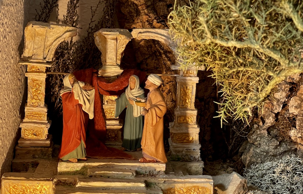 Gracias Vicent por estar ahí... gracias por lo del "estilo personal"... es algo que ha nacido solo y creo que ya no sabría hacerlo de otra manera, se puede configurar de una manera o de otra, pero en el fondo es algo que nace de dentro y por mucho que quieras, hay cosas que son como el ADN de las manos del belenista... es como la caligrafía, que sella con tinta tu personalidad y es reconocida por los demás con un pequeño trazo. Precisamente la vegetación no era lo que este año me había propuesto como novedad, sino que surgió con el encuentro con mi amigo florista y se ha abierto una puerta llena de recursos que llegan para quedarse a la hora de colorear y recrear el espacio. Gracias también por "admirar mis obras", me basta con que admires lo que representa. El mío delante del espejo, el tuyo delante de la vidriera... luces a distintas horas del día que tamizan escenas que en el fondo lo que hacen es recrear el Misterio de la Navidad...