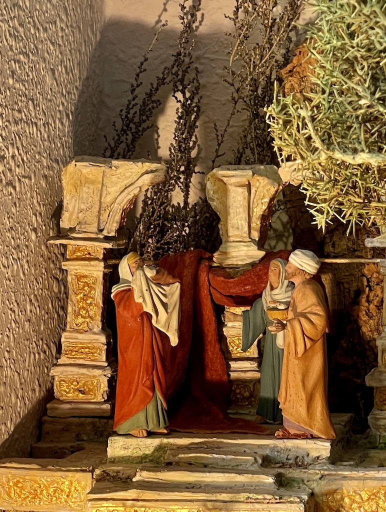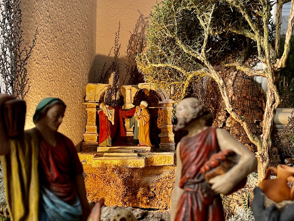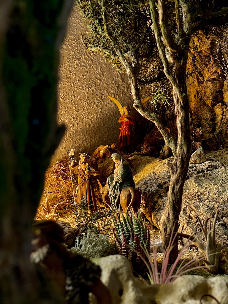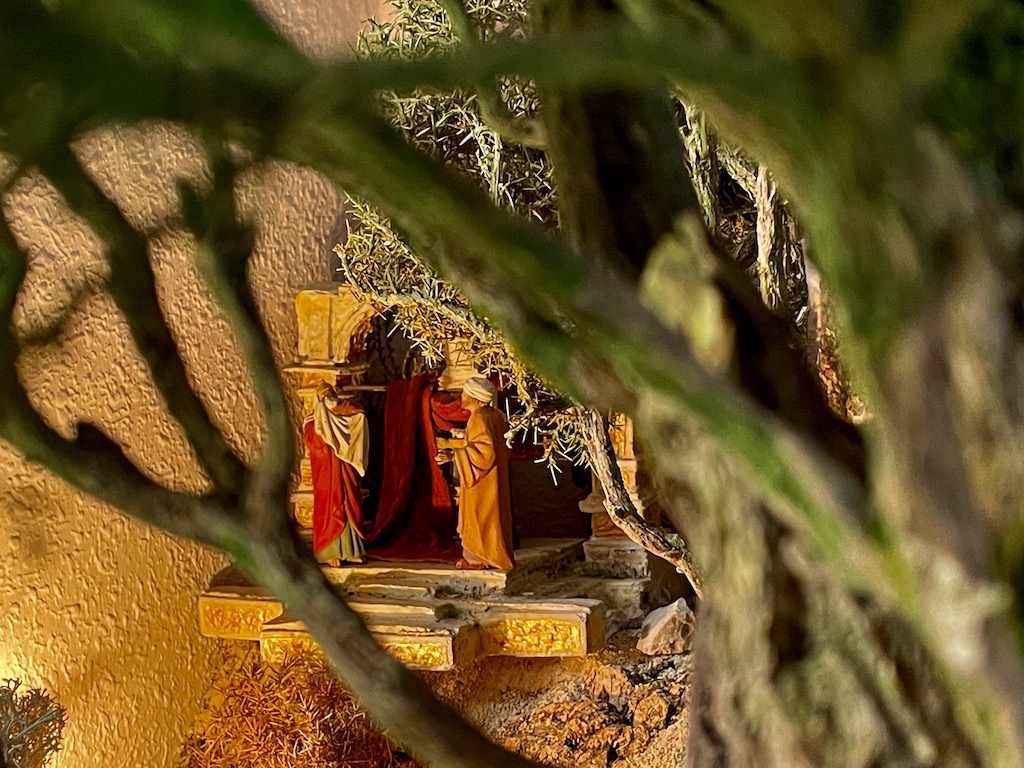 Gracias Vicent por estar ahí... gracias por lo del "estilo personal"... es algo que ha nacido solo y creo que ya no sabría hacerlo de otra manera, se puede configurar de una manera o de otra, pero en el fondo es algo que nace de dentro y por mucho que quieras, hay cosas que son como el ADN de las manos del belenista... es como la caligrafía, que sella con tinta tu personalidad y es reconocida por los demás con un pequeño trazo. Precisamente la vegetación no era lo que este año me había propuesto como novedad, sino que surgió con el encuentro con mi amigo florista y se ha abierto una puerta llena de recursos que llegan para quedarse a la hora de colorear y recrear el espacio. Gracias también por "admirar mis obras", me basta con que admires lo que representa. El mío delante del espejo, el tuyo delante de la vidriera... luces a distintas horas del día que tamizan escenas que en el fondo lo que hacen es recrear el Misterio de la Navidad...