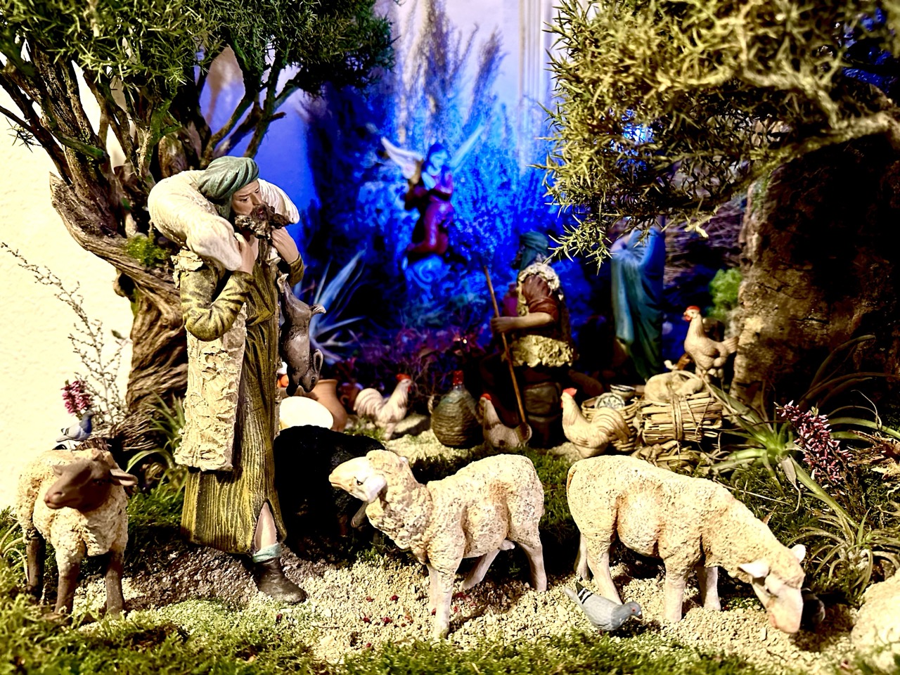 Los corderos ... el carnero grande, que acompaña al pastor, que recuerda a tantos pasajes de la fuente de nuestra fe, el Evangelio. El carnero acompaña a la historia del Pueblod de Dios desde siempre y por siempre... Él es el cordero de Dios que quita los pecados del mundo, y redime nuestro ser y su sangre se derrama por cada uno de nosotros... un 'spoiler' cargado de simbología que no podía faltar en donde la vida se va narrando poquito a poquito, escena a escena, figura a figura...