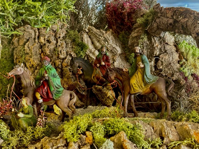 Este año estrenamos en el Belén Malkior esta cabalgata de Reyes Magos a caballo de la serie 702.10. Llegaron a la coleccion en mayo de 2022, en sus cajas originales, bastante deteriorados y han sido resaturados por Manolo Salado. Los hemos puesto sin pajes, van ágiles, a prisa, siguiendo la estrella que les lleve hacia el portal... en búsqueda de lo que sin saber, ya tienen bajo sus pies...