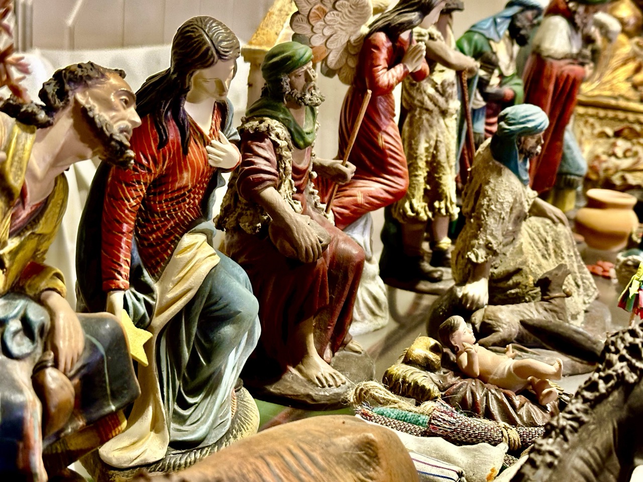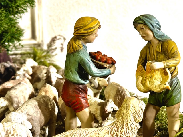 Y vosotras... silentes y calladas... figuras de Belén en serie, que dormís en la quietud de la vitrina mientras caminamos como hojas de fresno entre la primavera y el otoño... vosotras, que me despertáis emociones profundas, que acariciáis mis recuerdos y mi corazón, que narráis historias de vida y de Evangelio... gracias por traer siempre aroma y fragancia de tradición...