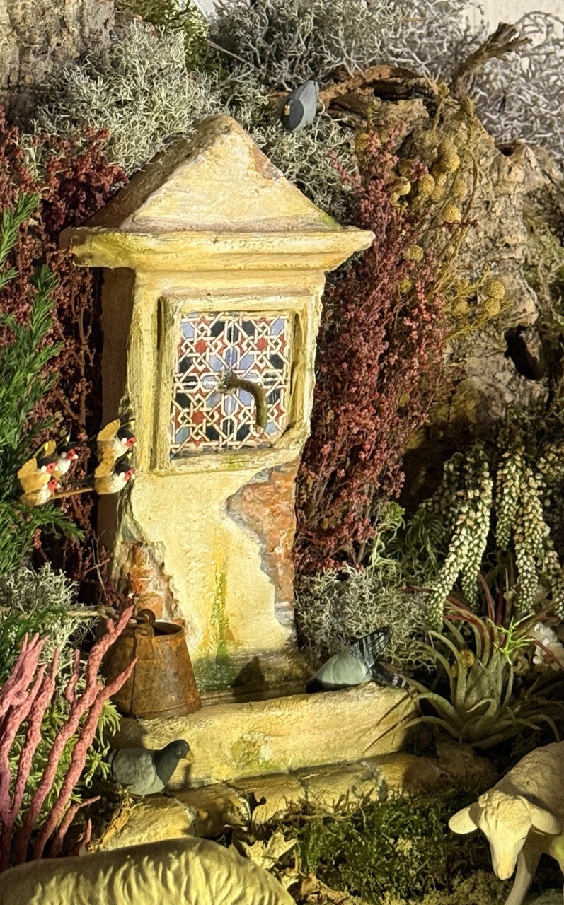 La luz que emana de Él lo inunda todo. No es una luz que deslumbra, es una luz que explica. Ahora se entiende el sentido de la fuente, de la reja oxidada, del musgo que crece. Todo, absolutamente todo en el Belén Malkior, estaba esperando este preciso instante. La materia, que gemía con dolores de parto, descansa por fin. El corcho, la piedra, el agua y el hierro han encontrado su sentido: servir de cuna al Amor.