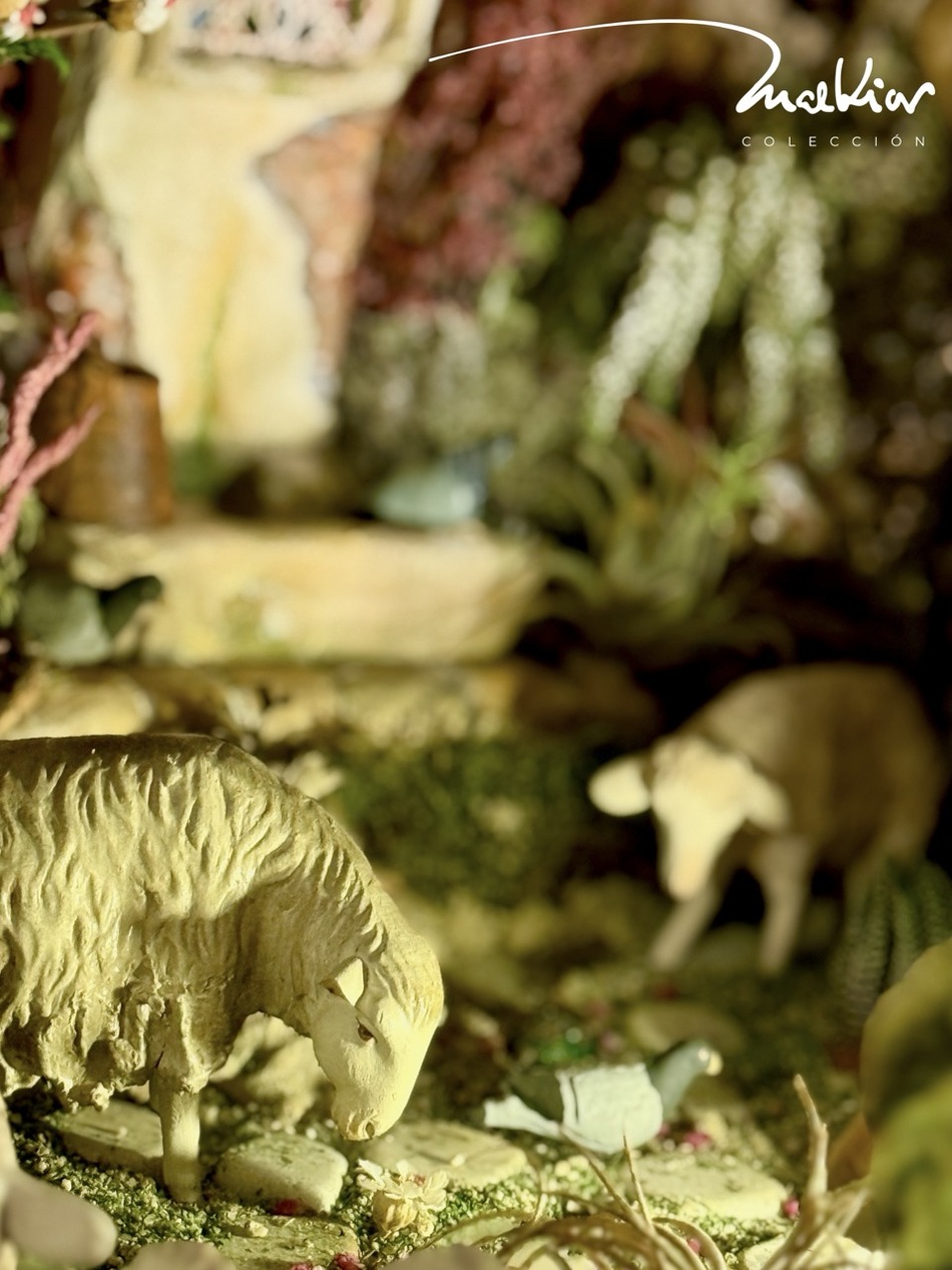 Para quienes buscan el dato detrás de la emoción, es justo poner nombre a las manos que modelaron este barro. La escena cobra vida gracias a las figuras de Ortigas (pastores) y de José Joaquín Pérez (quien firma al niño Benjamín y al rebaño). El perro, obra de J. Fernández (Decorarte). Benjamín, no es solo atrezzo; llegó a la Colección Malkior como un regalo del compañero y forero Benjafru. Hoy, este testigo ocupa su lugar en la escena sirviendo de homenaje a la memoria de su madre, quien nos dejó la pasada víspera de Reyes. Que su de niño sea también nuestra oración silenciosa por ella.