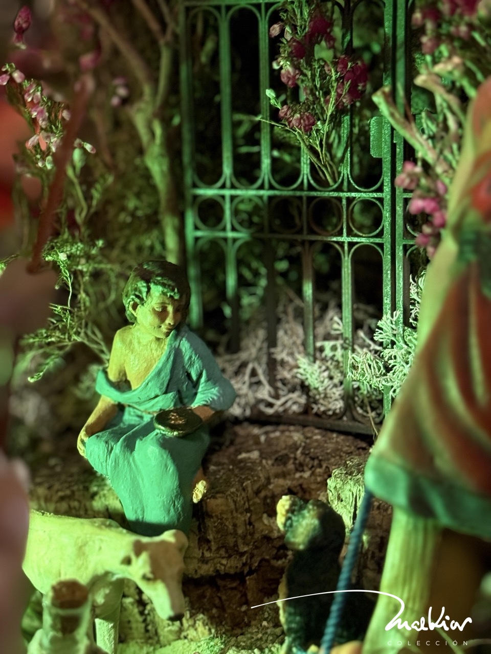 Esta figura nos lanza una pregunta incómoda a los que ya estamos pensando en desmontar: ¿Somos capaces de quedarnos cuando la fiesta se acaba? ¿Tenemos la fidelidad del galgo que no abandona el puesto aunque la música haya cesado? Malkior sigue encendido. Las figuras siguen llegando. Y mientras quede un perro fiel vigilando la reja y una pequeño Malej Mijael descansando del camino, el Belén no se apaga. Se transforma en resistencia. Que el foro duerma si quiere. Nosotros, como Malek, nos quedamos a hacer guardia hasta la Candelaria… o un poco más.