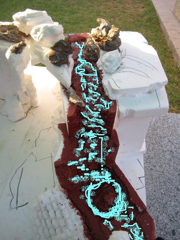 Queria que el agua se moviera de un lado a otro antes de dejarla bajar.Te lo dibujo sobre el cauce para que te hagas una idea.