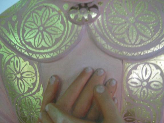 hola Juan, eres un encanto, mira que hacer un viaje sólo para mostrarme las fotos, el mundo iría mucho mejor si hubiese muchas personas como tú. Con respecto a las fotos te diré que me gusta mucho com queda, pero no estoy segura de que esten hechas con hojas de pan de oro, porque esos dibujos son dificilisimos de hacer en pan de oro, son líneas y curvas muy delgadas y el pan de oro se adapta mal para hacer ese trabajo, tendría que verlo "in situ" y entonces te lo diría, fijándome en el dibujo atentamente y en sus formas parece más bien la técnica de stencil, probablemente con polvo de oro mezclado con goma laca o algo similar, aún así queda precioso, pero fíjate que además de las figuras de arriba, las 4 fotos de la muñeca(estan en dos mensajes seguidos) que he puesto en otras artes en porcelan, el marco está hecho con hojas de pan de oro y siendo mucho más grande que estas cintas es muy complicado manejar esas laminitas que casi se deshacen solo con soplarlas y hay que manejarlas con las manos empolvadas para que no se deshagan y se peguen. Yo tengo planchas para estarcir con dibujos muy parecidos al que muestras y que he usado a veces, pero no en oro sino con otros colores.Por cierto, que despues del trabajo que te has tomado,de pura chiripa he visto el mensaje, al ver en figuras otro mensaje para mi, y quería preguntarte, ya que me olvido a veces de los mensajes que he mandado,¿Se puede ver en algun apartado los mensajes del foro que yo recibo? porque los que mando los puedo ver en mi perfil, pero los recibidos, creo que no, es que estoy en pañales en esto del foro, fíjate que quiero poner una fotito y una frase para mis mensajes, así me sirve de referencia y no sé cómo se hace,ja,ja. tendré que pedir ayuda a mi nene. Reitero de nuevo las gracias por las fotos, ya las he guardado, y te mando un caluroso abrazo, eres único, no cambies nunca.