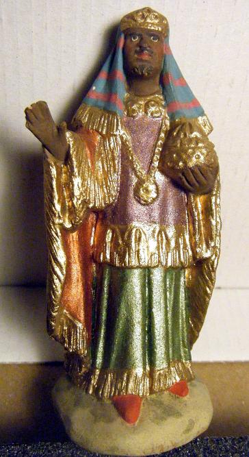 Nos vamos encontrando periódicamente con este autor, del que creo que vimos bastantes figuras cuando tratamos el "tema Teixidor", ya que, siendo totalmente diferente a Teixidor, a veces hacía unos turbantes con el característico enrollado al cuello teixidoriano. Son de construcción sencilla pero muy elegante, de molde sin utilizar miembros de plomo, como es habitual en los autores "buenos" catalanes y se caracterizan por sus ojos redondos, pero no saltones. La pintura de los Reyes Magos es brillante, tipo purpurina, como se hacía a principios de siglo XX (tengo bastantes ejemplos, en figuras de Reyes de Pep del Nas y otros).