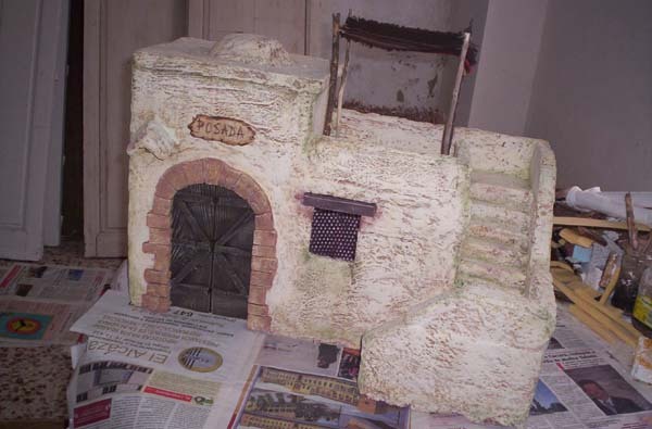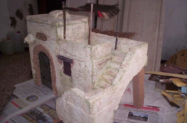 Os mando el siguiente trabajo que he acabado.Sera la posada y por detras donde esta el techo de caña ira el establo, solo esta a falta de decoracion que sera terminada cuando se coloque en el belen. Un saludo en esta mañana de terrible calor.