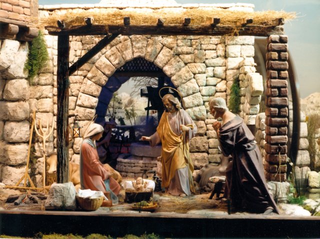 Así, el belén realiza cuatro representaciones a lo largo de la Navidad; el 25 de diciembre, celebrando el nacimiento de Cristo con la Adoración de los pastores; el 1 de enero, con la Circuncisión del Señor; el día 6, con la Adoración de los Reyes y el día de la Candelaria con la Huida a Egipto. En cada una de ellas, un narrador situado en el lado de la Epístola pone voz a la historia, mientras el grupo de belenistas encargados de su montaje, accionan las figuras desde la parte inferior del montaje. Especialmente interesante resulta la última de las representaciones, la de la Huida a Egipto; aquí, un pastor se encuentra sembrando sus tierras, cuando ve pasar a la Sagrada Familia en su camino hacia Egipto. Al día siguiente, el pastor regresa a su finca y se encuentra con unas espigas listas para ser cosechadas; en ese momento, llega Herodes a caballo seguido por su tropa, y preguntándole por si había visto a una familia huir con un bebé, el pastor contesta “Los vi en efecto, el día en que sembraba esta tierra”. El rey Herodes, al observar que el trigo está listo para cosecharse, abandona la búsqueda creyendo que la Sagrada Familia hacía meses que había pasado por allí.