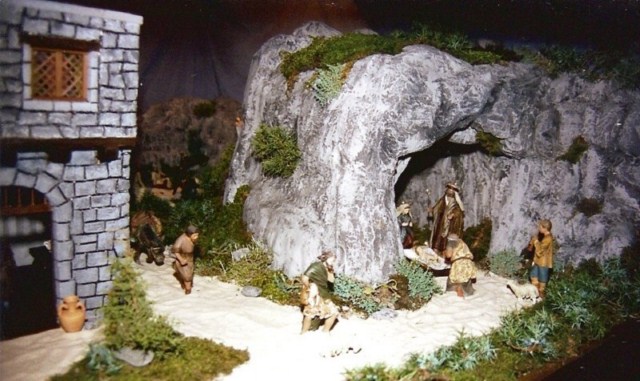 Lógicamente, poco tiene que ver aquél primer montaje que realizó en 1985 y del que hoy os dejamos algunas imágenes, con los que han venido después. Sus aptitudes para el dibujo y la pintura, que también ha practicado, se plasman en sus belenes, dotados de una gran carga creativa. Hoy, un esmerado trabajo de cúter y una estudiada pintura son las señas de identidad de sus belenes, a los que sabe imprimir su estilo, haciéndolos fácilmente reconocibles. Y si en 1985 fueron utilizadas figuras salidas del taller olotino de «El Arte Cristiano», en los veinte años sucesivos José Luis Mayo Lebrija, Pedro Ramírez Pazos, J. Joaquín Pérez, Manuel Sánchez Raposo o los Hmnos. Castells han modelado a palillo piezas para el belén, renovándose también cada dos años de forma que a cada nuevo escenario le corresponde su colección de figuras.