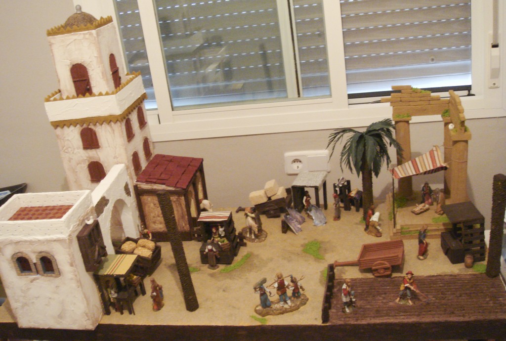 Después de mostraros la primera parte de mi belen ya terminado, y de mostraros el paso a paso de cada uno de los componentes de estar tercera parte, os enseño las fotos del conjunto ya terminado, sólo me queda hacer las hojas de las palmeras, las hortalizas del huerto y las cajas de frutas, panes y demás del mercado. Espero que os guste