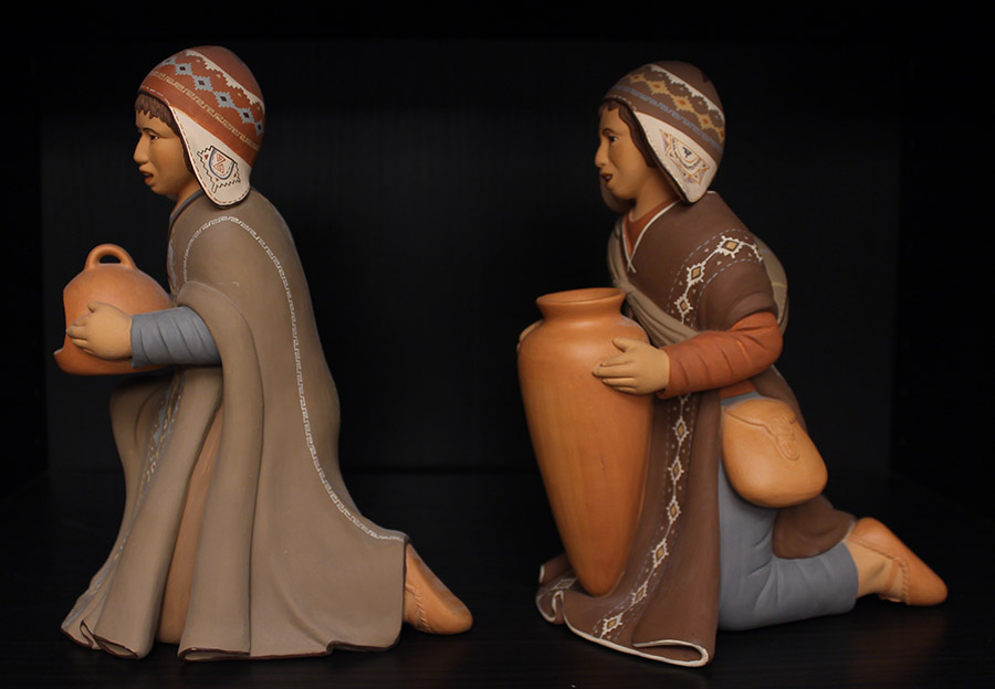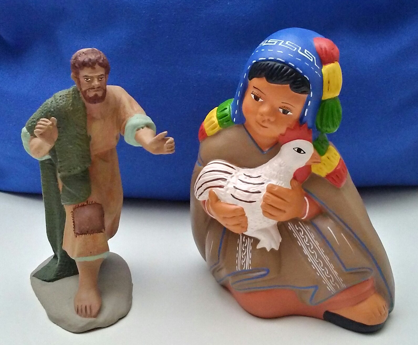 Gracias por el enlace, son muy bonitas!, te preguntaba porque estas Navidades me regalaron un Nacimiento Peruano y es como comentas con..."los colores vivos y brillantes que se ven habitualmente en los mercados de artesanía."...no tienen nada que ver con las tuyas, las subo para hacer la comparativa, son de menor tamaño (también comparativa con figura de Castells de 12). Y es curioso también vienen tres con el Nacimiento y este último es músico...