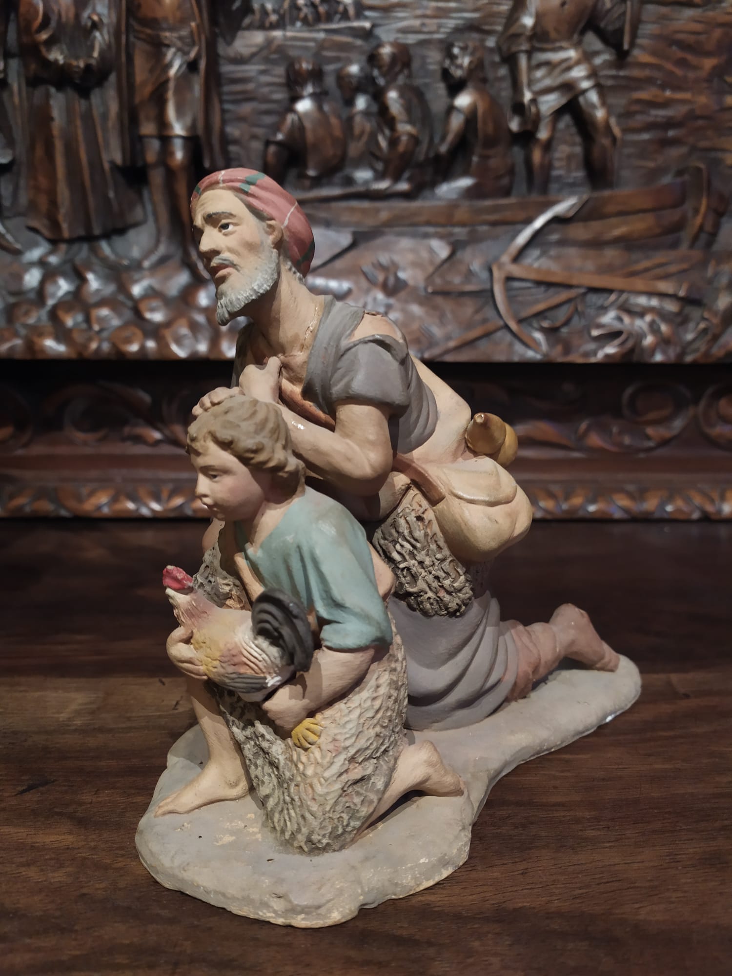 Comparto también esta figura en yeso de unos niños adorando, uno de ellos manco. No tiene sellos ni firmas, creo que por Acehy podrían ir los tiros...