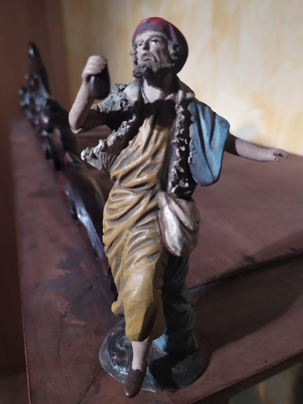 Volviendo al grupo de Tunito, es cierto que las caras cuentan con una expresividad contenida en el instante (siempre me repito en esta expresion, pero es que es la que mas identifica el estilo de Ortigas) Doy mi voto y originalidad a las laterales, el músico sedente es tambien de una fuerza brutal, pero entra en juego (y no echo tierra a mi pasion) del aprovechamiento se moldes... a veces ese mismo molde ha cambido el laud por la caña... o por unos panes...! Por eso le regalo mi voto de originalidad a las que lo flanquean... y siempre ese ocre especial que usaban los talleres de Ortigas.