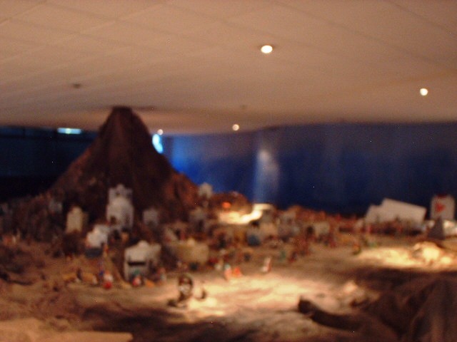 hola a todos!, ¿Se acuerdan del proyecto escolar que les conté verdad?, nuestro Belén mide 300 metros cuadrados, llevamos una semana construyendo, cada día movemos una caravana de 40 niños pues el espacio está un poco lejos de nuestra escuela y los chamacos han ido cortando, pegando, empapelando, pintando riendo y jugando cada día. Al principio estaba un poco histérica porque quedara bien, después caí en cuenta que como ellos lo hacen es lo mejor, divirtiéndose...Como soy novata no sé si he hecho la distribución de la mejor manera, pero bien ahí va:hicimos una montaña en el centro para dividir el espacio, así la gnete tiene que rodear para tener una apreciación completa del espacio. Representamos Nazareth, Belén y Egipto a lo lejos. Cambió un poco del diseño original, pero ahí vamos. Cuando nos entregaron las figuras encontramos de todos tamaños, materiales y estilos, hay unos muy bellos de barro, otros de plástico, unos son como charritos mexicanos..en fin van algunas fotos, prometo mejorar la calidad, pero ya quería mandar algo y no me aguantaba hasta la otra semana. Gracias por sus consejos, han sido herramientas para facilitar nuestro trabajo y yo aquí toreando las bromas de mis chamacos que cada que me descuido ponen un pozo encima de una duna en el desierto o el borrego mas grande en lo alto de la motaña y esperan a que lo descubra para carcajearse un rato...en fín aún nos falta un rato....
