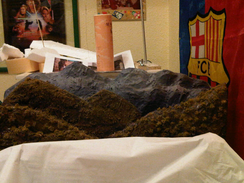 Pd: Intentad olvidaos de las montañas más bajitas que están delante del todo... están pegadas aunque con fin de quitarlas de ahí cuando monte el Diorama... eran las 2.30 y no tenía ganas de trabajar más....