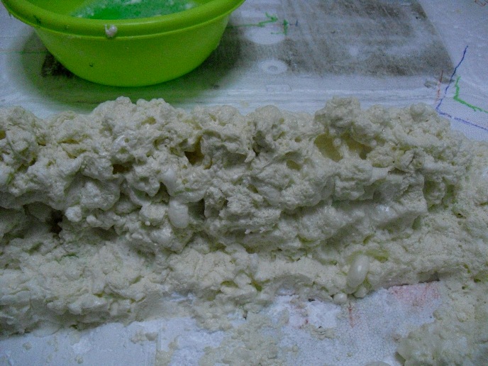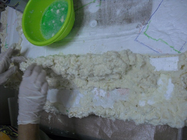 Con el agua jabonosa no se pega absolutamente nada a los guantes y como has visto en las fotos la puedes colocar y esparcir a tu gusto, !una maravilla, vamos!!. Ahora voy a poner unas fotos de como va qudando con el plaste, idea de Gloria, algo que le agradezco muchísimo, y algo de pintura.