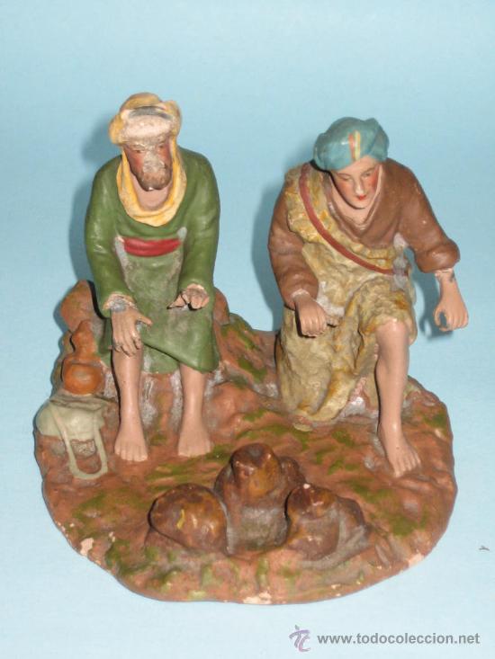 26108686.jpg (43KB - 292 descargas)Otros reyes, creo que son del mismo autor, son iguales que los de la primera foto. Los mios son de yeso rosado aunque la base estaba pintada en barro, miden 11 centímetros, las adquirió mi padre en Lleida en los años 50.