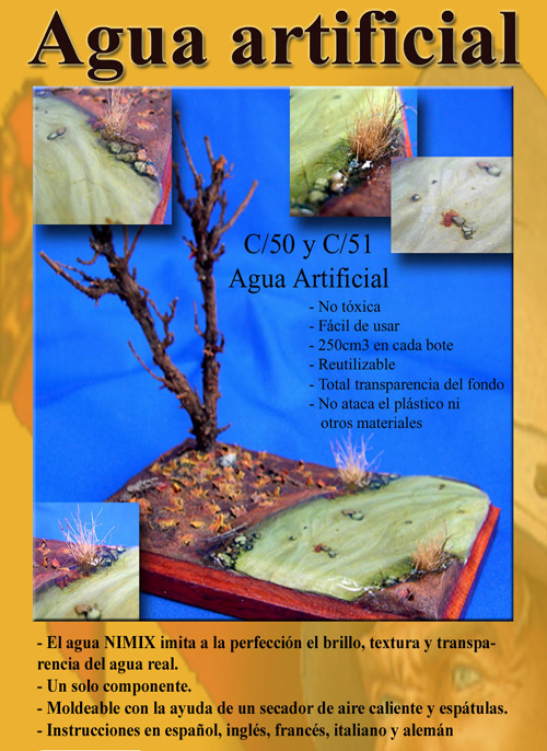 Hola. Ese material se usa en modelismo ferroviario, es un líquido pastoso y pegajoso que hay que calentar al baño maría para que se haga más líquido, luego se vierte sobre la superficie que quieres poner como río, fuente, etc... y cuando empieza a endurecer, le haces las ondas y olas con la panza de una cuchara o con un alambre. Espero haberte servido de ayuda. Yo ese material lo voy a utilizar para un diorama sobre un puerto francés de los años 30, para hacer la orilla del mar.