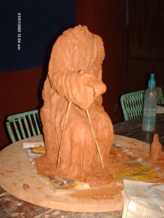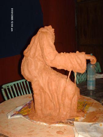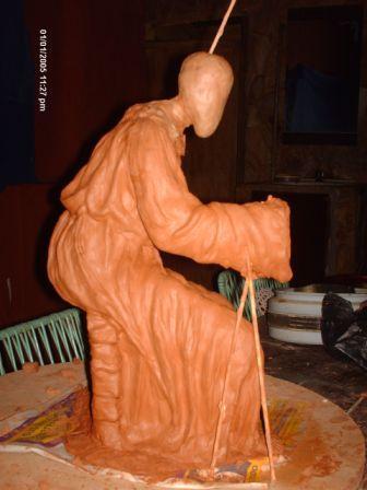 hola a mis amigos foreros, aqui les muestro el inico de lo que sera la figura de san jose, espero sus grandes correciones y sugerencias para que me salga muy bien, esta en proceso apenas, el barro muy fresco todavia, fijiense bien y me dicen si las proporciones las ven bien, la cabeza ser lo ultimo que modelare, llevara en la mano derecha un farol de alumbrara a la virgen y al niño. un gran saludo