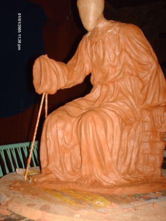 aqui les muestro a san jose con el brazo ya recortado, como lo ven?todavia demasiado latgo?ya esta alisada la tunica. y coloque la cabeza sin forma detallada, solamente para ver la proporcion, me parece que esta bien asi, ustedes me dira, muchas gracias, saludos