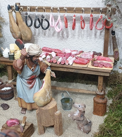 - Carnicero de Alcántara en 12 cm, con puesto de carnicería, 150 €