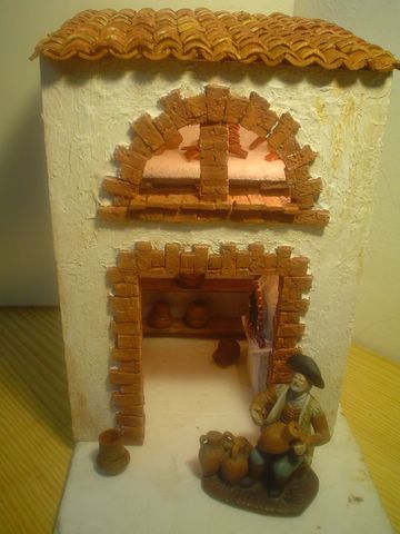 Pongo a continuación unas cuantas fotos de mi ultimo trabajillo, es la alfarería, como vereis esta sin terminar, le falta el suelo, unos retoques en la pintura y algunos detalles más. Ya pondré las fotos cuando la termine definitivamente.