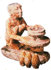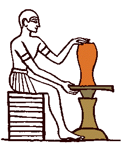 Anteriormente he puesto algunos tornos de alfarero, pero vamos a empezar con un poco más de orden. Cuando se inventa la cerámica no existen tornos ni otros artilúgios. La realizan principalmente mujeres tal y como se viene haciendo incluso hoy día. El torneado era estático, sin ayuda de la fuerza centrífuga de ningún "aparato", una simple "laja" de piedra y mediante "churros" o "colombines" y con ayuda de las manos y algún canto rodado se iba dando la forma, para la decoración se empleaban punzones de hueso o madera, conchas de almejas etc. Después la cosa mejora y como base se emplea el cascote de un cacharro roto hasta llegar a unos 3500 aC que se inventa la rueda. Esta consistía en una piedra gruesa y plana que llevaba un apéndice (para hacernos una idea como si fueraq una pirindola) que facilitaba el torneado que seguía siendo mediante churros o colombines. Poco después evoluciona y en vez de ser una piedra plana era un grueso madero circular al que se le añadió un eje metálico o de madera que iba introducido en una oquedad y ya no sólo podía girar, si no que, qdemás se mantenía un tiempo el giro, lo que facilitaba aún más el torneado.