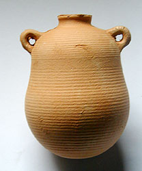 ceramica.jpg (7KB - 348 descargas)Pongo algunas lamparillas de aceite de la época empezando por las más antiguas de época cananita (tierra de Canaan) de cuatro picos y de un pico, después alguna de procedencia bizantina, griega, romana y la lámpara herodiana llamada así por ser de la época de Herodes. Se ve claramente la evolución de las mismas y las diferencias formales entre unas y otras y prácticamente coexisten todas a la vez