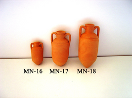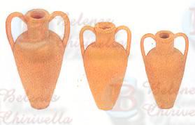 Pues bien las ánforas minóicas, griegas y etruscas tienen aproximadamente la misma raiz con sus lógicas evoluciones que vienen dadas principalmente por el uso y forma de transporte. Lo que yo he encontrado lo tienen en Presepi Pigini y Filcos y es posible que alguna casa más disponga de ello