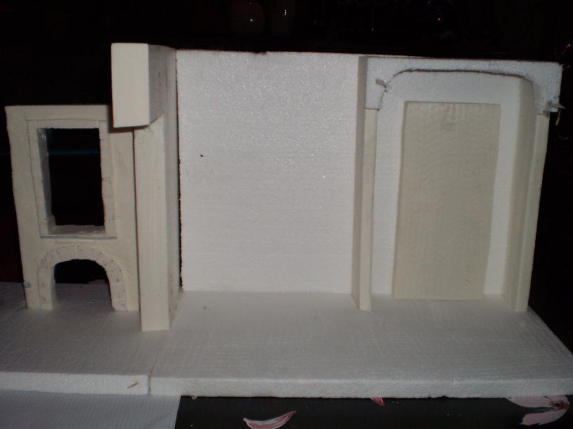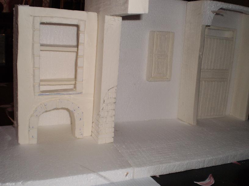 Aqui subo unas fotos de como la voy haciendo, las partes blancas creo que las pondre con aquaplast, y el tejado con vigas imitando madera y techo de aquaplast encima, agradeceria, que me dierais consejos y opiniones , ya que al ser la primera edificacion ando un poco perdido, por mucho que haya leido jajaa