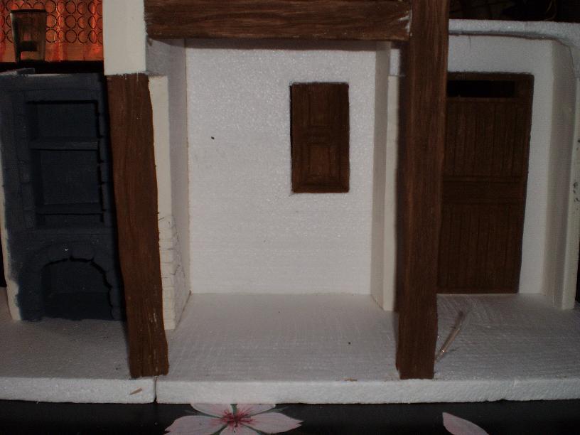 Aqui subo unas fotos de como la voy haciendo, las partes blancas creo que las pondre con aquaplast, y el tejado con vigas imitando madera y techo de aquaplast encima, agradeceria, que me dierais consejos y opiniones , ya que al ser la primera edificacion ando un poco perdido, por mucho que haya leido jajaa