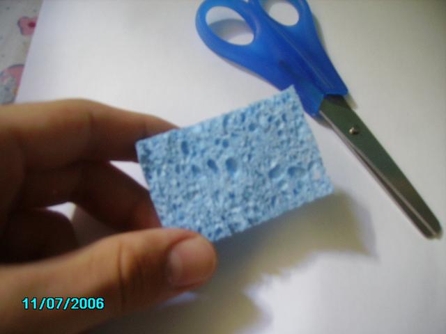 1º Cogemos la esponjita desmaquilladora(foto 1),y la recortamos a nuestro gusto.
