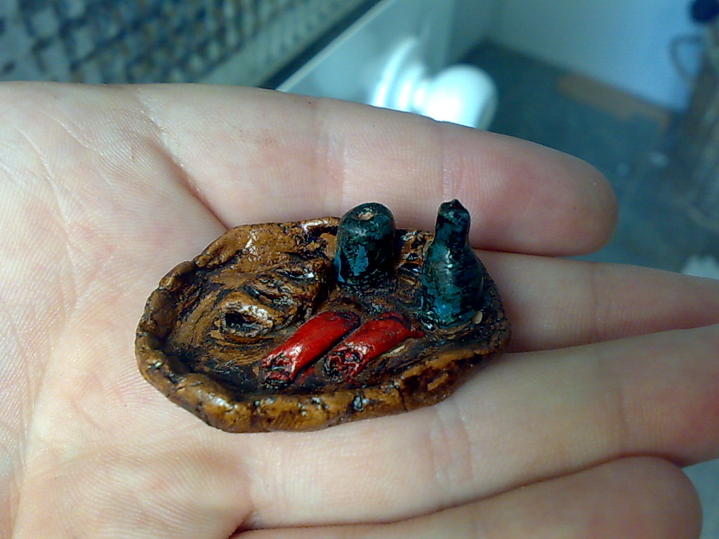 eres un autentico experto en miniaturas, esas comiditas se ven estupendas, casi llega hasta aqui el olorcillo. Magnifico trabajo, sigue mostrando cositas, que es un placer verlas.