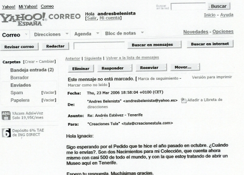Agradezco tu mediación ante TULA. Pero estimo, que lo menos que se puede esperar cuando uno se dirige a comprar algo, es que le atiendan, y en mi caso respondan a mi último Correo, y me digan por los menos en qué fecha esperan servirme mi Pedido, si es que lo piensan hacer. Sin entrar a valorar la forma de trabajo del Artesano en cuestión, pero sí valorando su mala o nula respuesta COMERCIAL hacia mí como cliente en este caso.