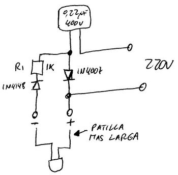 Un Diodo led de pendiendo del tipo y color puede conectarse a tension continua con solo añadirle una resistencia, la cual dependera de la tension continua con la que queramos encender el diodo led, ademas podeis buscar un articulo que puse en el foro que titule "Diodos led de alta luminosidad en el Belen" en el se esplica con detalle como calcular el valor de la resistencia a conectar. En cuanto a conectarlo a 220 v directos tendremos que utilizar unos cuantos componentes mas os paso el esquema por si os interesa, salu2