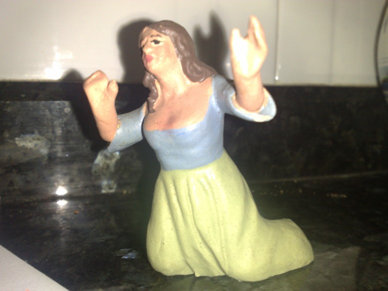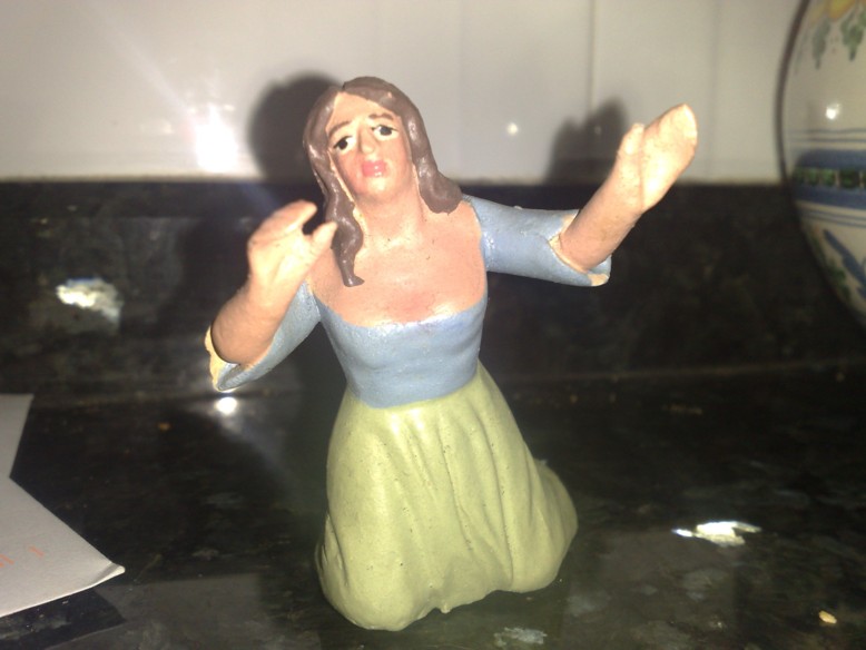 Además hay otros valores muy importantes en este tipo de figuras tan humildes, aparte de su propia belleza, y es que son figuras que estaban al alcance de cualquier persona. Yo siempre me imagino las manos que han tocado las figuras de mi colección, la del pastor manoseado, sucio, manirroto; la de la lavandera con la cabeza pegada con pegamento imedio, etc... estas figuras nos hablan de una historia vivida por otras personas que las utilizaban, la adoraban, y de niños que jugaban con ellas, en definitiva, todas ellas tienen un libreto de una vida, vivida en mil manos, lástima que muchas figuras populares desaparezcan por su escaso valor económico o incluso estético, cada vez que se pierde una para siempre, perdemos un poco de la historia del belenismo y la tradicion popular.