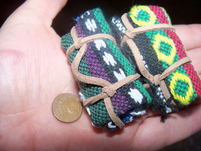 Hola amig@s!!!Queria enseñaros una cosa sencillita pero que va bien para rellenar nuestro Belén.Se trata de unas mantitas atadas a modo de petate.Sólo son dos trocitos de tela enrollada y atadas con hilo encerado o con cuerda.Espero que os guste y quizás os pueda servir.Un abrazo.