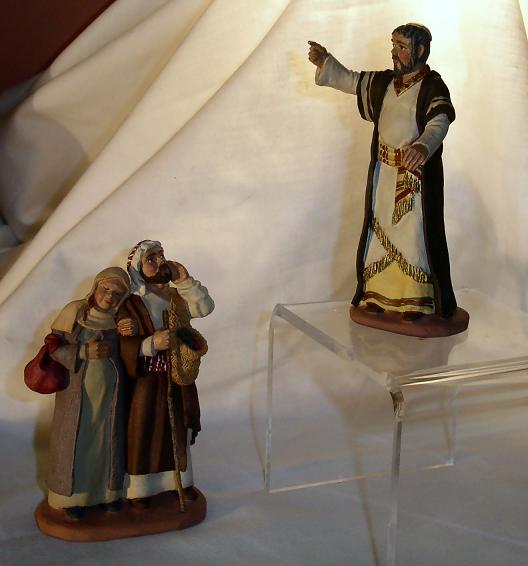 2.- Por una cuestión de variedad de aspecto de las figuras. Casi todos los pastores, aldeanos, etc., son gentes humildes y más o menos andrajosos; los personajes ricos con figuras vistosas son muy pocos: los Reyes Magos, Herodes, los sacerdotes y doctores de la Ley... el posadero permite darle un aspecto más ostentoso de lo habitual (sin exagerar) y da variedad a la colección en la vitrina y al belén.