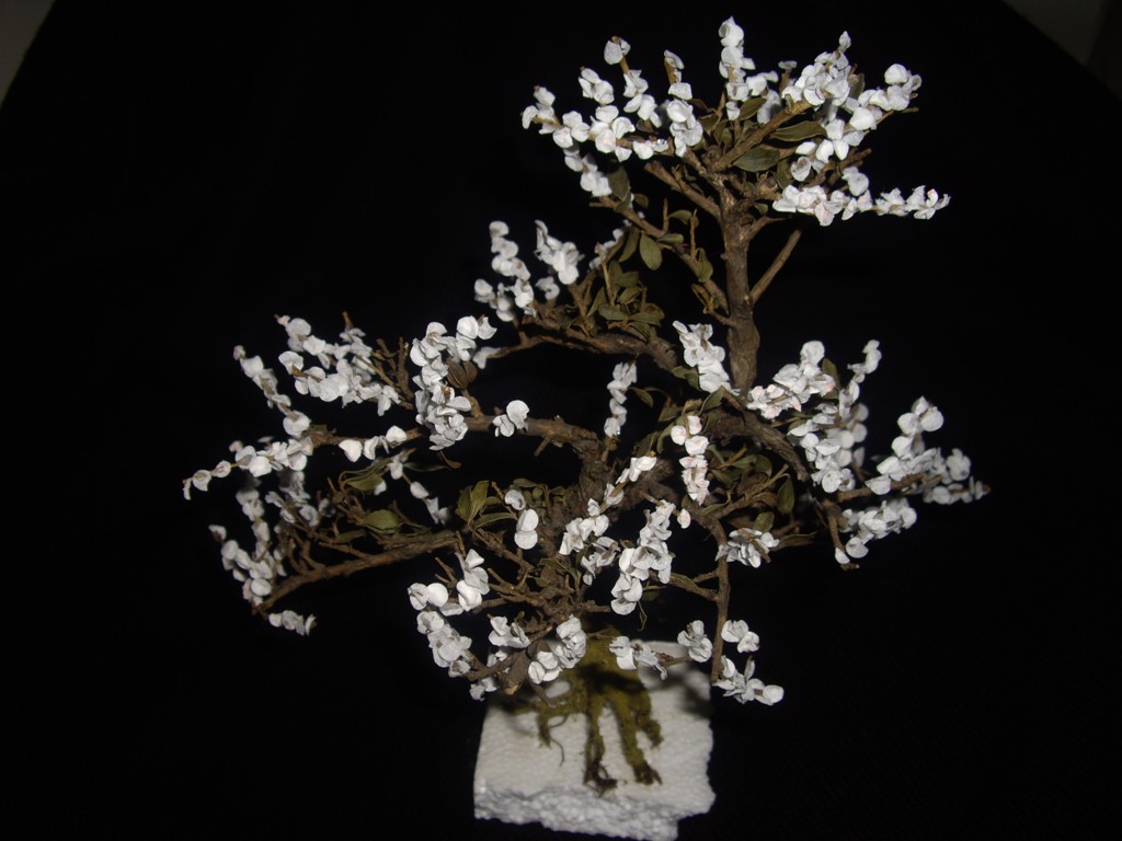 Aprovechando el esqueleto de un bonsai que se me secó, me he decidido a hacerme un almendro en flor para el belén de este año. Espero vuestras opiniones y sugerencias. Saludos.