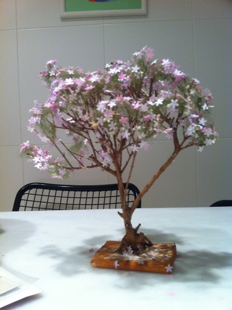 He llegado a hervir las flores (en casa alucinan), las he doblado un poco con los dedos y las he ido pegando directamente a las ramas. Tenías razón Sereno, se parece un poco más a los almendros que he ido viendo por internet.