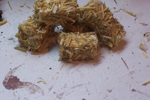 Si en vez de paja utilizais estropajos de esparto recortados previamente os que quedaran mas reales (la paja) a la medida de las figuras., o tanbien va muy bien los cordeles de pita, tambien recortados .