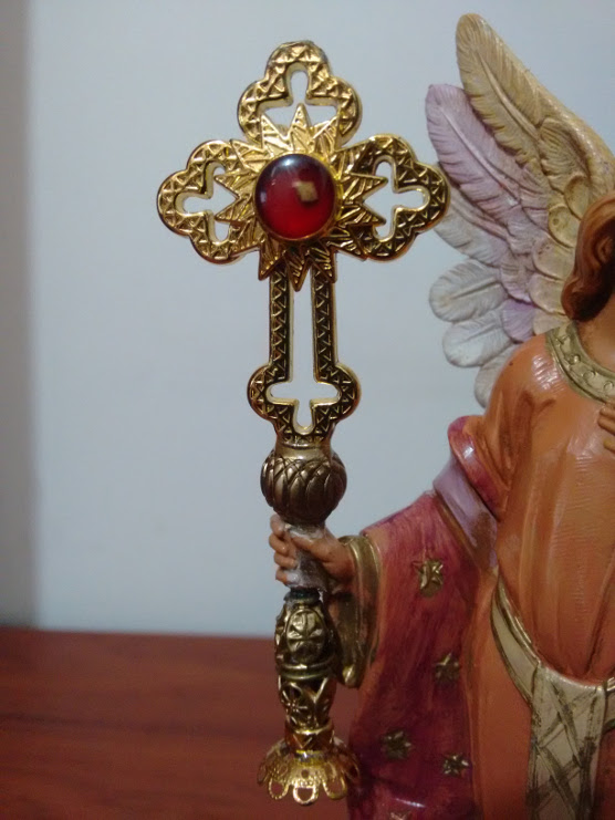 He realizado esta modificación a una figura Fontanini de 15 cm. Le he adherido una cruz con una reliquia de la gruta de Belén que ubicaré en el belén de este año.