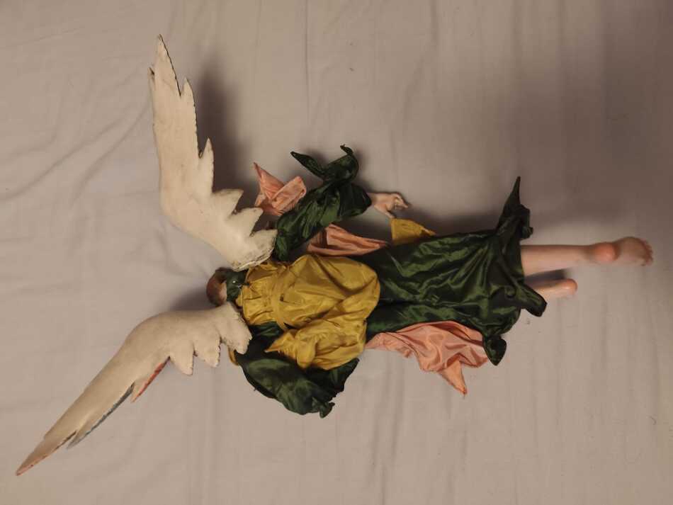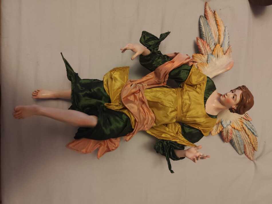 Vendo ángel napolitano original. manos, pies y alas tallados en madera y cabeza en barro con ojos de cristal.