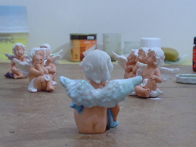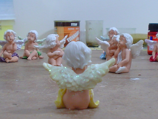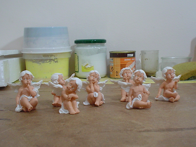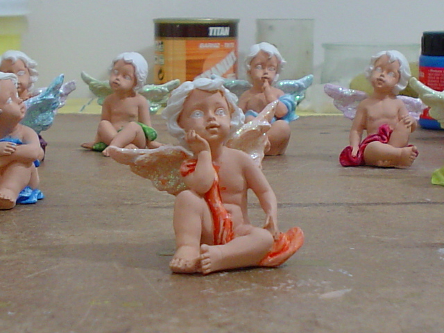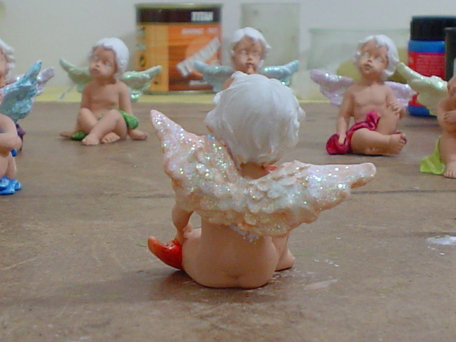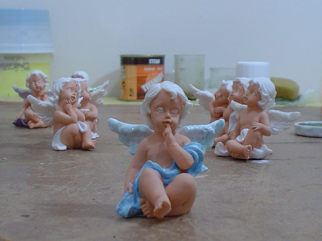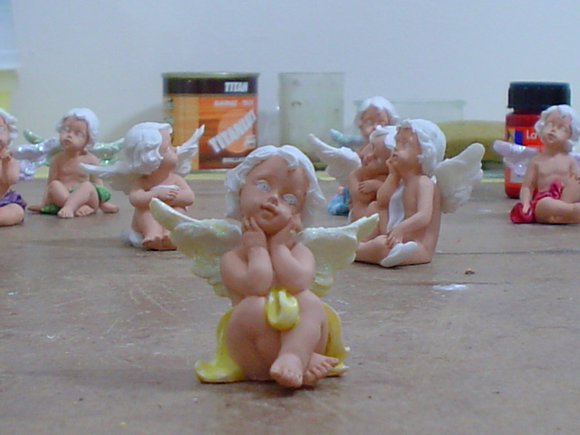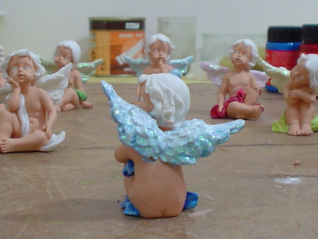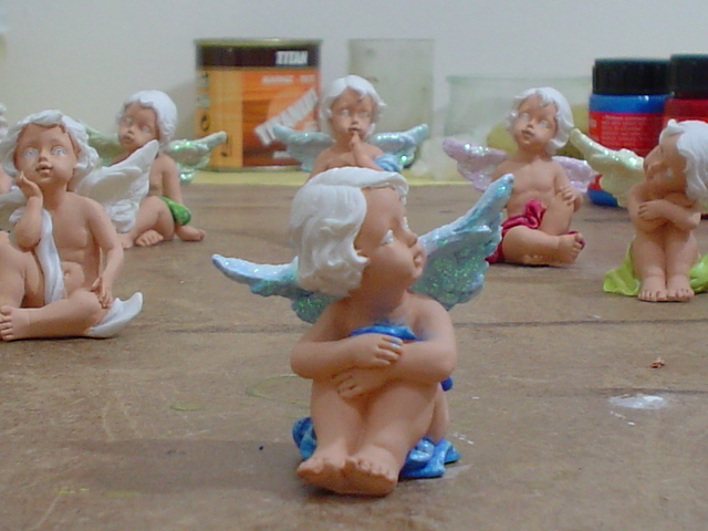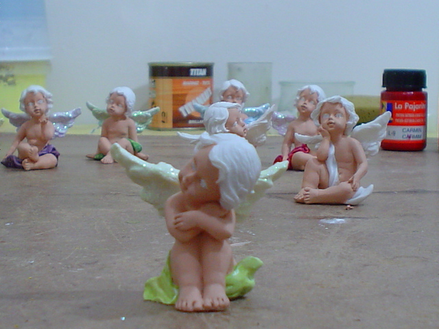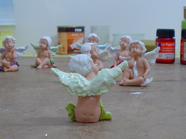 Estupenda idea la de comprar los angelitos en el chino y pintarlos, felicidades son muy bonitos, saludos.