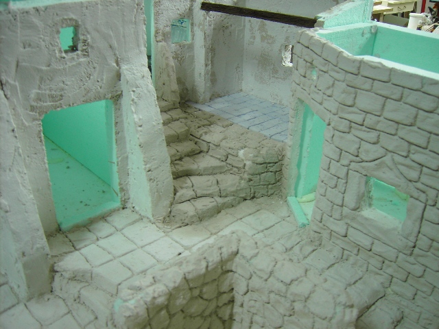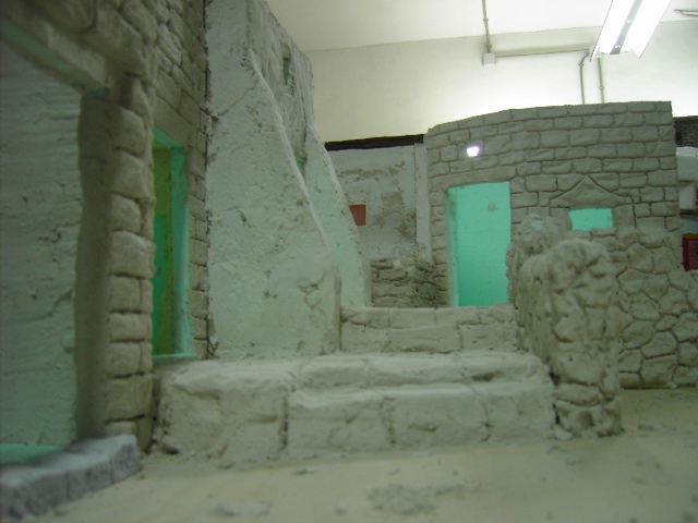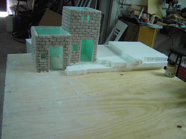 Mauricio, en lo sucesivo te puedes ahorrar el protocolo de Sr., Ud., etc. directo al grano, jeje, (es una broma) Respecto a tu pregunta, te digo que en este trabajo concreto los adobes son de yeso, pero cuando los tallo en porex los hago con el cuter y lija, salen más perfectos que con el soldador, (cautín) es cuestión de gustos.
