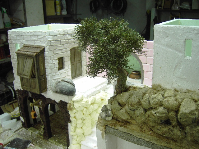 ...con respecto a los escalones, ninguna objeción, las figuras del belén tienen los pies chiquititos y además no se mueven. Lo del árbol tampoco es sorprendente, alguien que comía aceitunas en la terraza tiró un güito y, con el tiempo, mira lo que pasa.